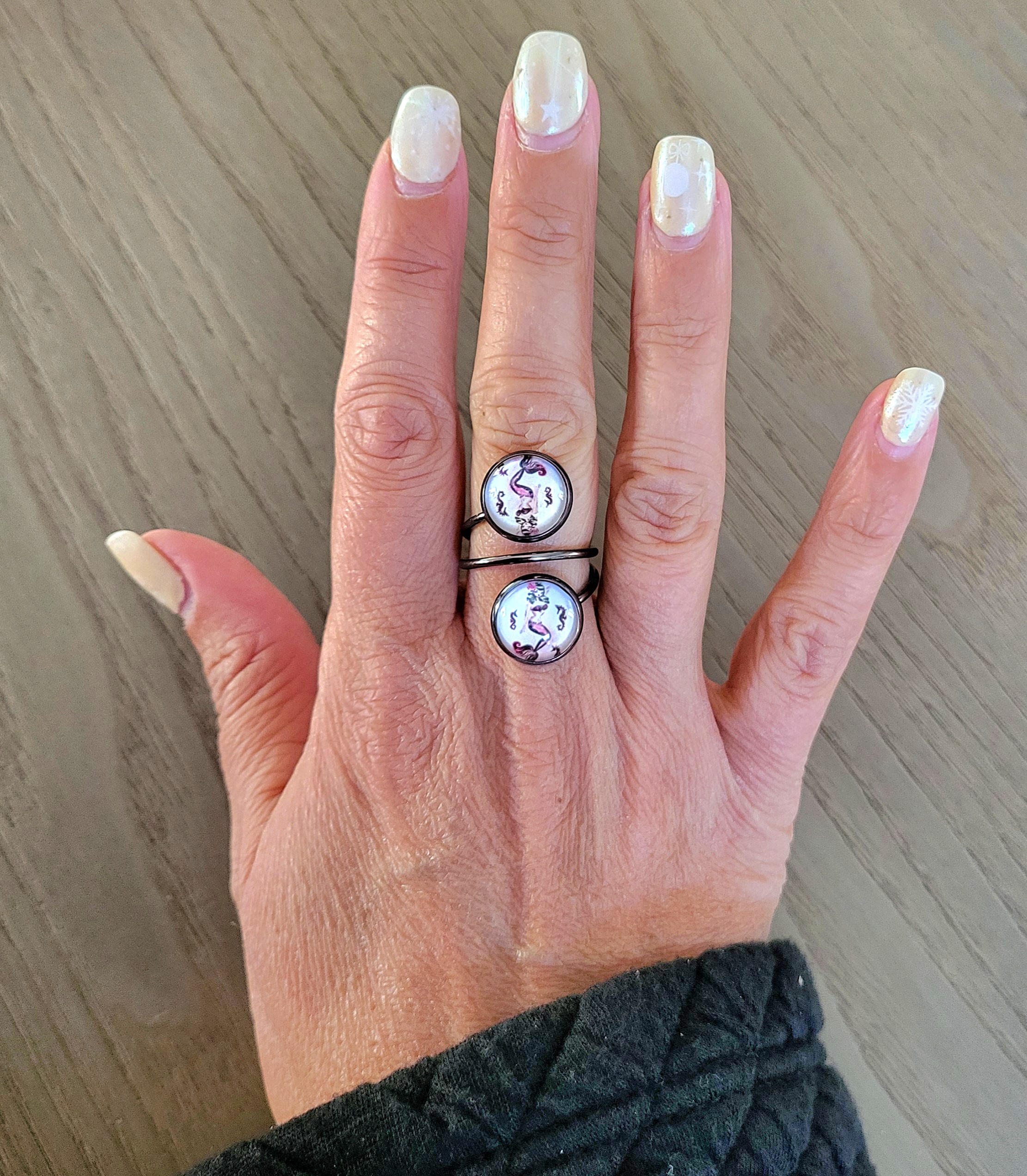 Bague double cabochon, ajustable métal anthracite – Pin’ Up Sirène