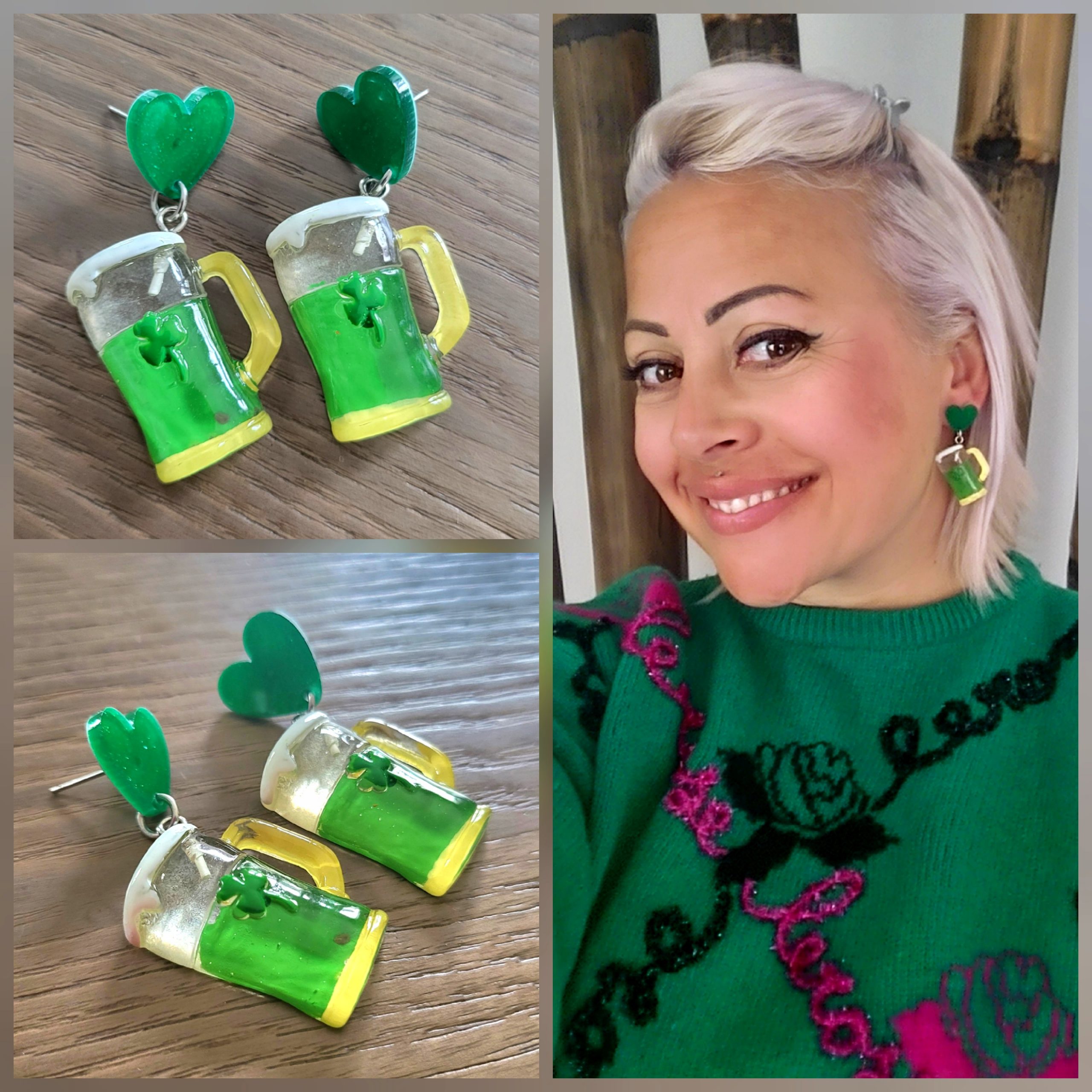 Boucle d’oreille en résine, clous St Patrick – Chope 1