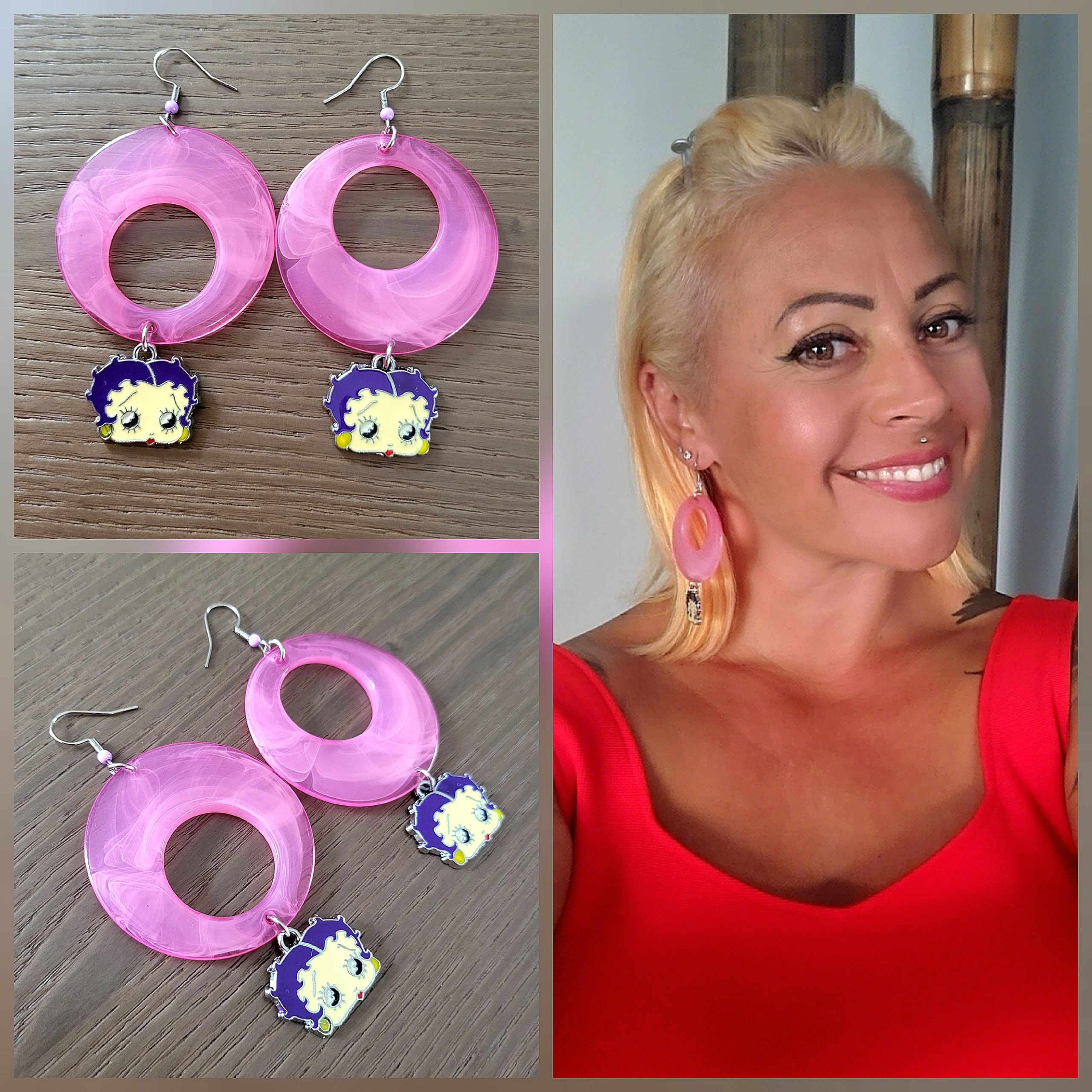 Boucle d’oreille en résine et ornement en acier émaillé « Betty Boop »