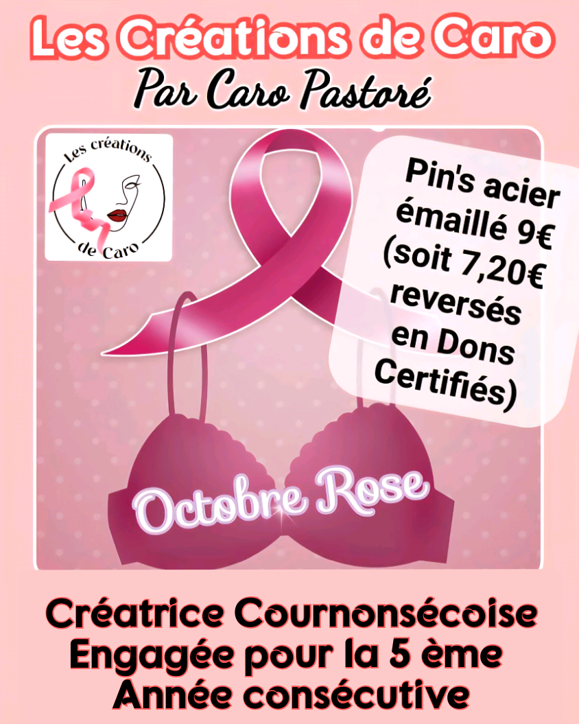 Je rappelle que 80% des ventes de la Collection Octobre Rose sont reversés en Dons certifiés sur des Associations locales Héraultaises 34, pour la 5 éme Année consécutive. Soit un Dons de 7,20€ reversé sur la somme de 9€